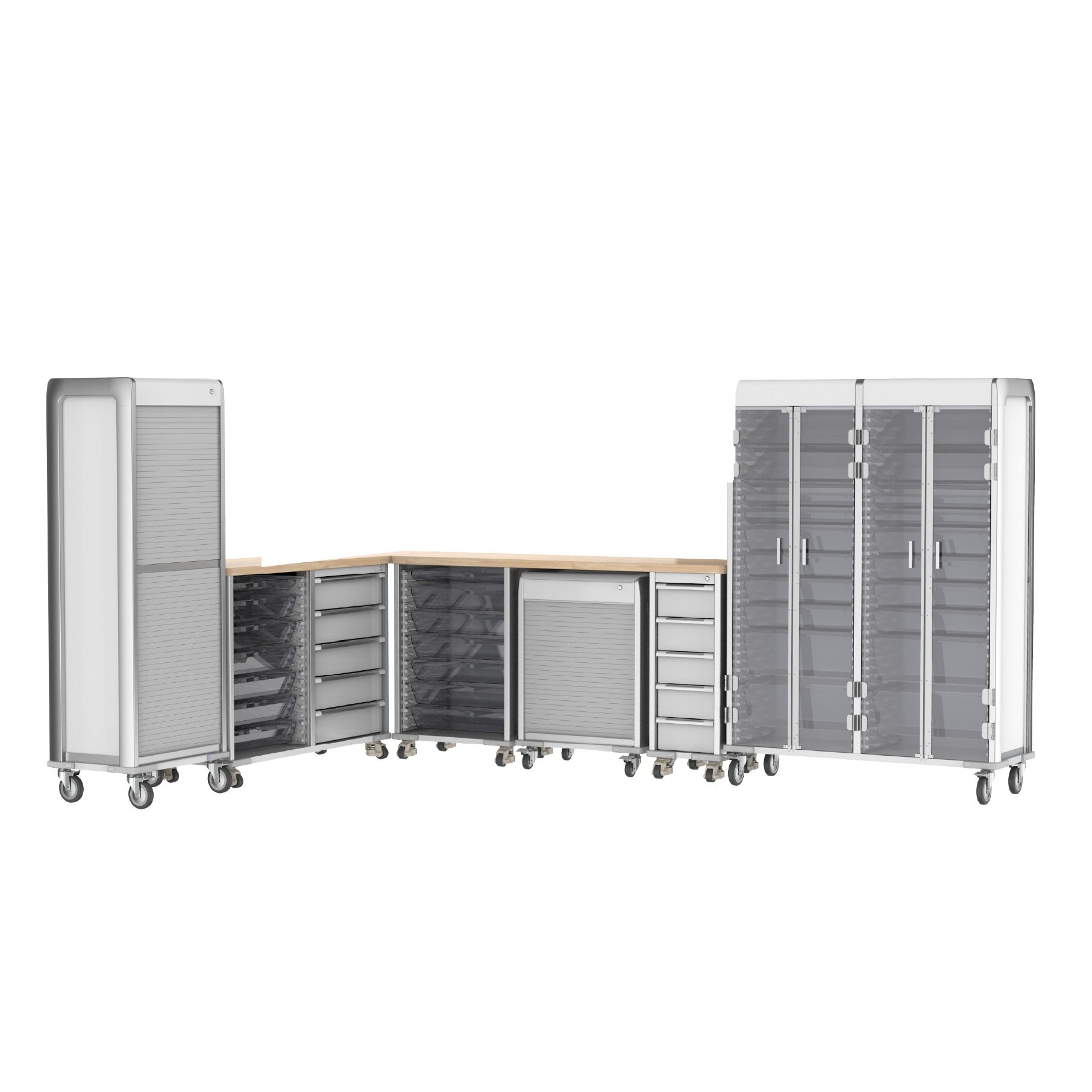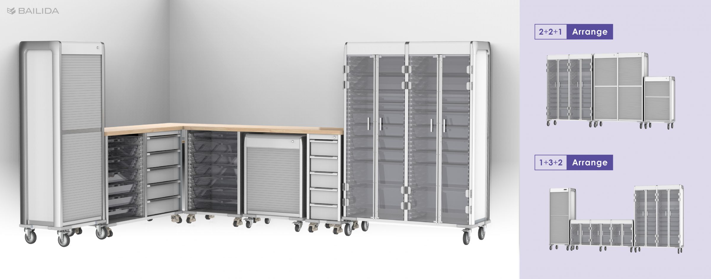 ①Боковые шкафы: Легкие и портативные, предназначены для использования под столами или в качестве вспомогательного хранения в маломасштабных операциях.②Рабочие станции: Интегрированы с двойными или тройными конфигурациями шкафов, подходят для зон с высокой нагрузкой, таких как медсестринские станции и лаборатории.